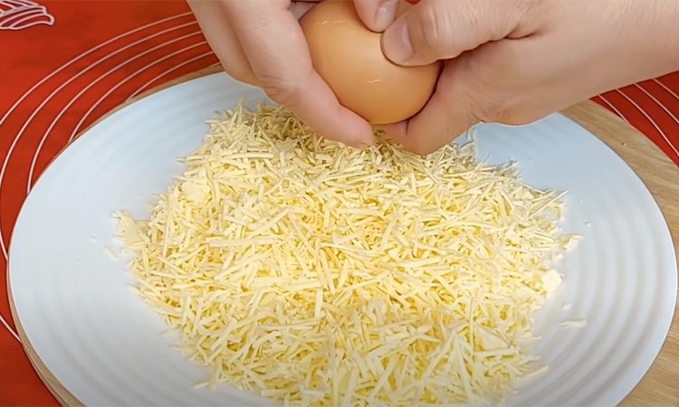 В отдельную емкость натираем на средней терке твердый сыр. Разбиваем в него яйцо. Перемешиваем и начинка готова.