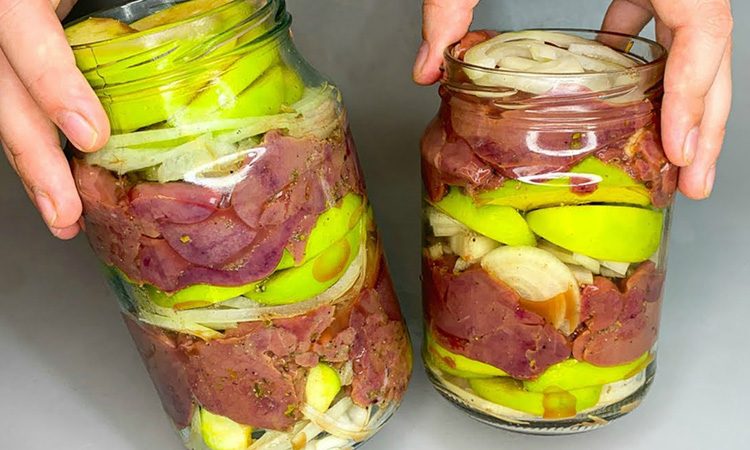 При жарке печень чаще всего получается суховатой, это мясо легко теряет сок. Поэтому намного вкуснее будет приготовить его в стеклянной банке и добавить немного яблок: на вкус они не повлияют, зато сделают печень невероятно мягкой.