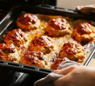 Сформируй из фарша шарики, переложи их на противень. В каждом шарике сделай углубление и высокие бока. Старайся, чтобы заготовки на мясные гнёзда были одинаковыми по размеру.