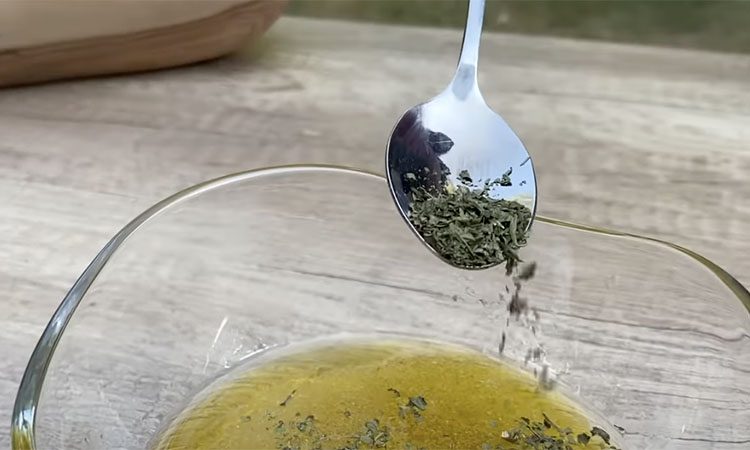 В отдельную емкость вливаем лимонный сок. Добавляем к нему оливковое масло и мед, затем высыпаем специи, мелко нарезанную петрушку и соль.