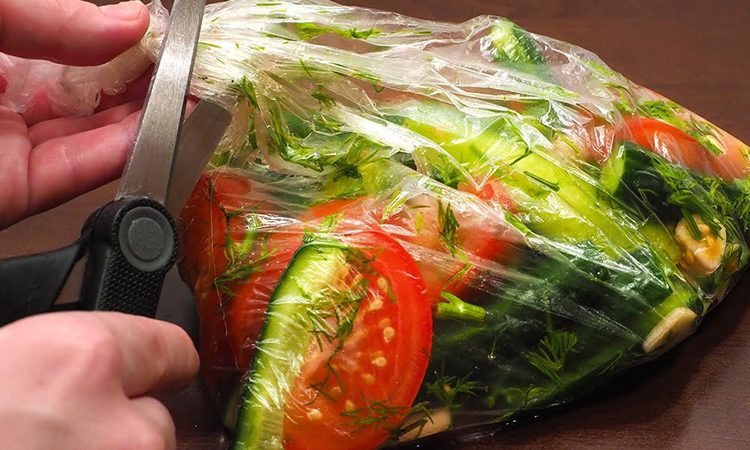 Овощи нужно нарезать не сразу в салатницу, а сначала в пакет: если добавить к ним легкий маринад и специи, то через 2 часа овощи станут настоящим деликатесом.