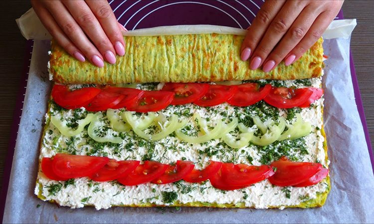 Сочный рулет из кабачков готовится за считанные минуты и при этом сразу же становится самым привлекательным блюдом на столе. Начинка может быть самой разнообразной!