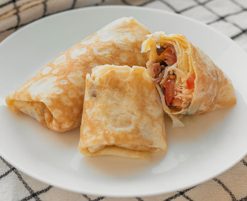 Яичные блинчики — удачный вариант быстрых низкоуглеводных блинов. Они получаются тоненькие и очень нежные. Удобно, что не нужно замешивать много теста. Можно приготовить ровно столько блинчиков, сколько нужно.