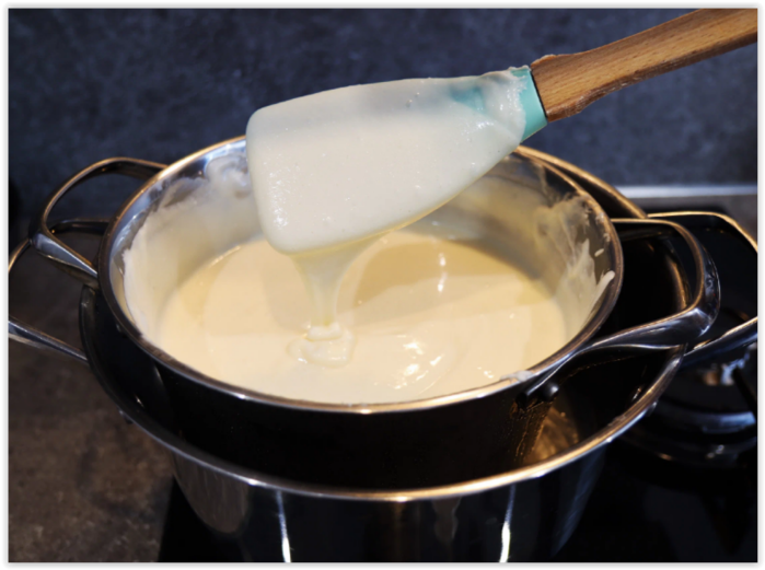 Кастрюлю с творогом ставлю на водяную баню и нагреваю. Через небольшое время творог на глазах начнет менять свою консистенцию. Нужно только непрерывно помешивать.