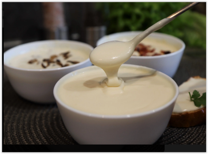 Готовый сыр накрываю пленкой в контакт, так не будет образовываться жировая пленочка, убираю все в холодильник, а часа через два сыр застынет. От магазинного не отличишь! Хотя, нет, отличишь. Он вкуснее и у него нежный сливочный аромат.