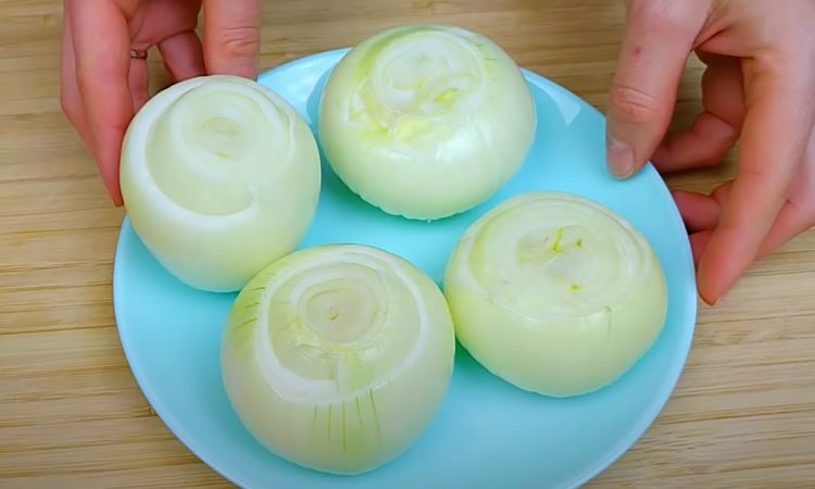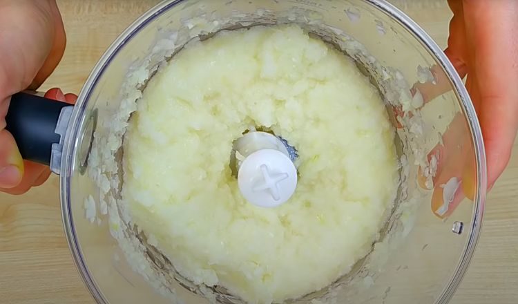 Сначала подготовим луковую массу: очищаем луковицы, режем на четвертинки и кладем в блендер.