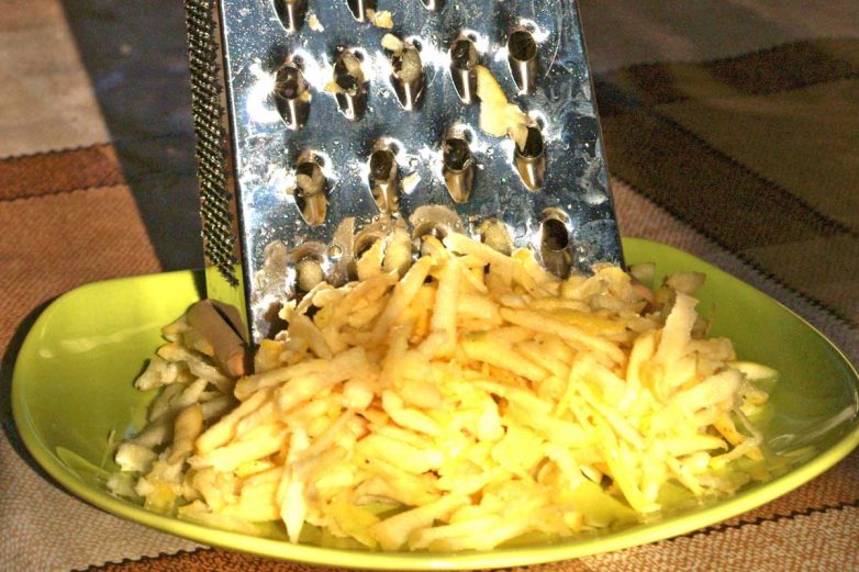 Яблоко почисти и натри на крупной терке. Добавь к тесту.