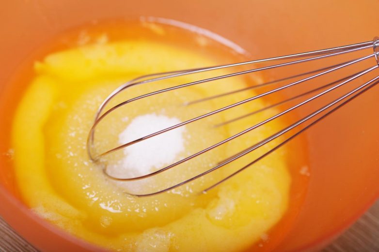 В небольшой емкости взбей яйцо с солью и небольшим количеством сахара. Можно также использовать любой подсластитель по вкусу.