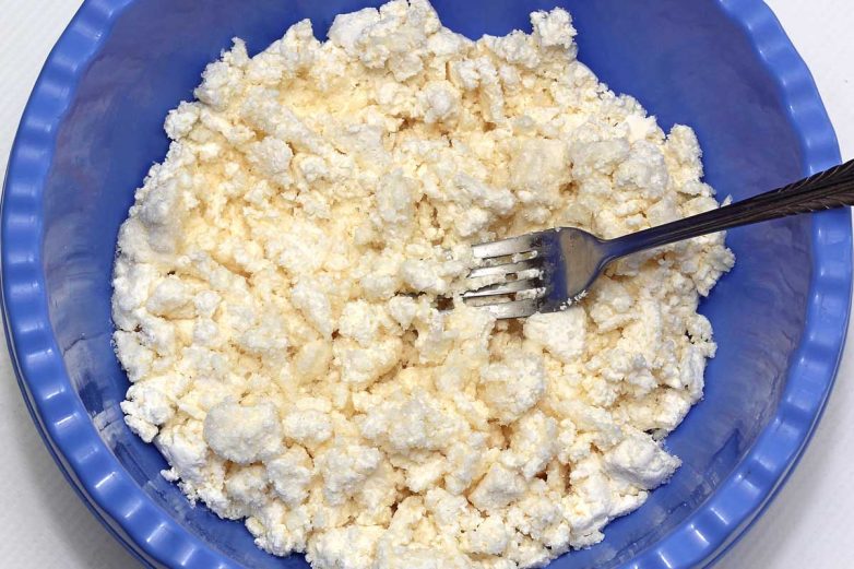 К яйцу добавь творог. Рекомендую брать творог 5%-ой жирности. Обезжиренный не очень полезный, а в этом и нужные вещества сохранены, и вкус отменный. Разомни творог вилкой до однородной массы. Можно взбить в блендере.