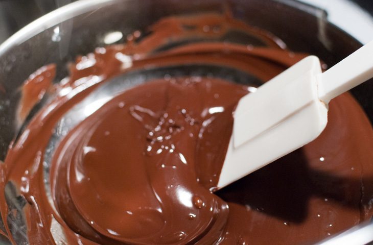 Забудьте про водяную баню и микроволновую печь. Все что нужно для плавления шоколада этим способом – это сухая жаропрочная миска из стекла и фен. Разломайте шоколад на куски, положите их в миску и направьте на них фен, держа его в 20-25 см. от шоколада. Время от времен меняйте направление потока теплого воздуха и перемешивайте шоколадную массу лопаткой.