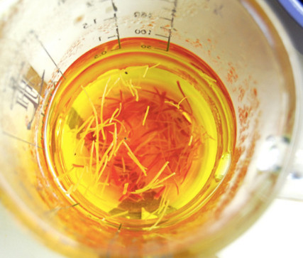 Шафран относится к тем пряностям, которые нужно использовать лимитировано. Отчасти это связано с его сильным ароматом, но также это объясняется высокой стоимостью. Если шафран смешать с водой, расходовать пряность можно крайне экономно, и без всякого ущерба для вкуса и аромата. Для приготовления шафрановой воды необходимо подсушить пряность на сковороде, а затем порвать на маленькие нити. Измельченный шафран замачивают в теплой воде в соотношении 240 мл. воды на каждые 1/2 чайной ложки шафрана. Такую воду можно хранить в холодильнике до 1 недели. Две столовые ложки этой волшебной жидкости будут равны одной хорошей щепотке шафрана.