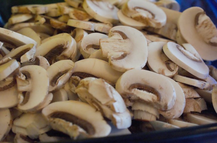 Не стоит измельчать грибы на мелкие кусочки. Вполне достаточно поделить их на четвертинки, а маленькие грибы и подавно стоит оставить целыми. В случае с некоторыми сортами вроде вешенок гораздо удобнее порвать их руками.