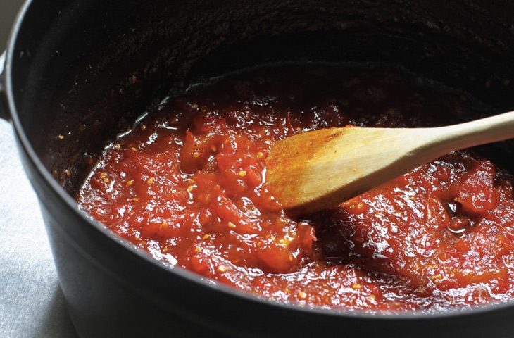 Для маринования помятые помидоры может и не подходят, но для томатного соуса они сгодятся. Помидоры следует обварить в течение примерно минуты в кипятке, очистить и нарезать. Готовую массу из нарезанных помидоров варят на медленном огне около часа, после чего добавляют по вкусу приправы. Немного чеснока, анчоусов, каперсов и измельченного красного перца — и вы получите соус к пасте алла путанеска, дополнение из масла и лука позволит приготовить соус в стиле Марчеллы Хазан.