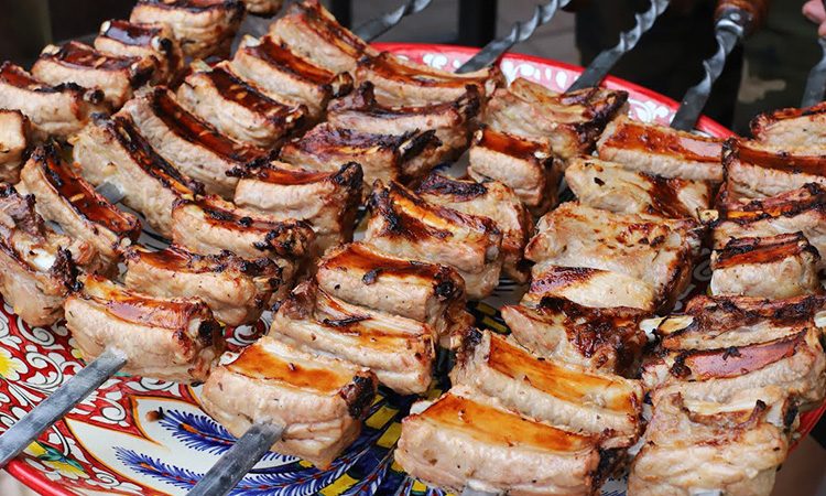 Тщательно все перемешиваем, затягиваем емкость с мясом пищевой пленкой и оставляем мариноваться на несколько часов. Затем останется только поджарить шашлык на углях.