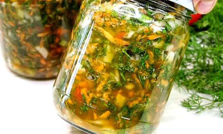 Готовую суповую заправку раскладываем по предварительно стерилизованным банкам, закрываем обычными винтовыми крышками и убираем в прохладное место.