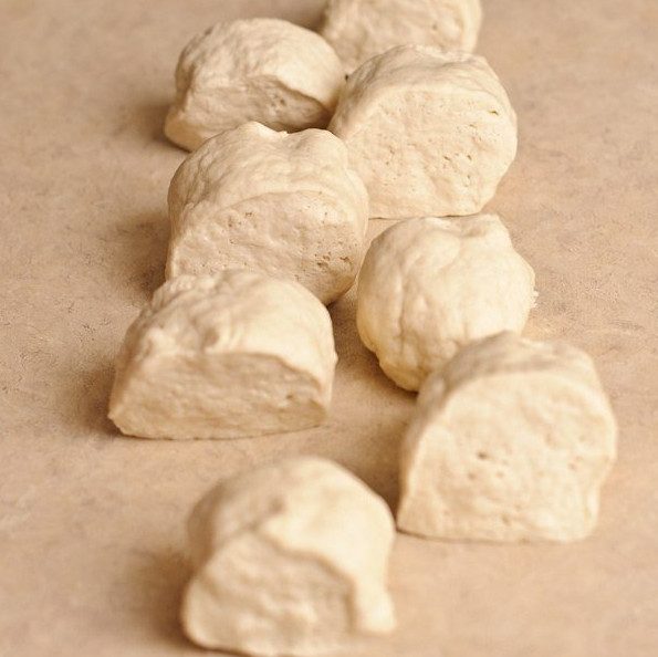 Растянуть тесто и нарезать его на 8 одинаковых частей.
