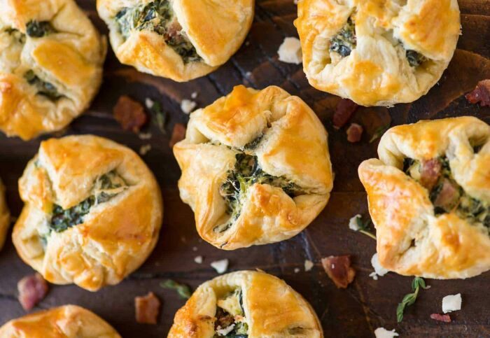 Творожный слойки со шпинатом прекрасны как самостоятельно блюдо, так и в качестве закуски к бульонам, супам или овощным гарнирам.