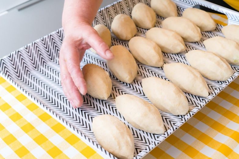 Из готового теста сформируй колбаску. Разрежь ее на одинаковые кусочки. Размер делай таким, чтобы в результате цеппелины получились в половину твоей ладошки. Но это дело вкуса: кому-то нравится чуть больший формат, кому-то, наоборот, меньший.