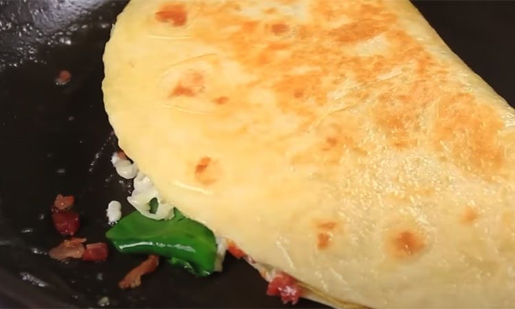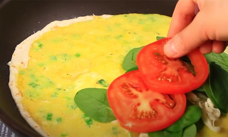 При стандартной жарке омлет наврятли станет блюдом на обед или ужин. Но стоит добавить лаваш, который кладется прямо на сковороду, как омлет в один миг превращается в импровизированный пирог — теперь его можно подавать в любое время дня и даже взять с вобой как перекус в дорогу.
