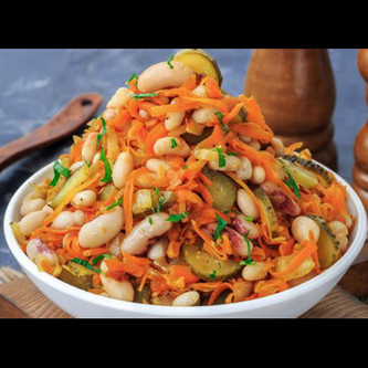 Простой салат из фасоли с маринованными огурцами
