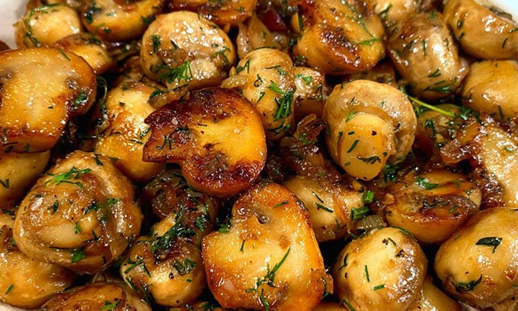 Шампиньоны при стандартных способах жарки на масле пускают чрезмерное количество сока и становятся суховаты. Можно приготовить их чуть иначе: в самом конце добавим к грибам сметаны, чтобы получить насыщенный сливочный вкус.