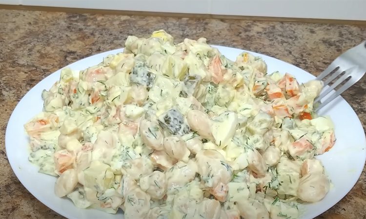 Знаменитый Оливье на самом деле всего за 5 минут заменяется намного более вкусным и интересным салатом. Рецепт такой быстрый, что готовить его можно и в будни, а в основе салата простая фасоль.