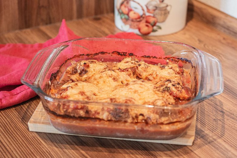 Этот рецепт в духовке — база, на основе которой можно фантазировать. Например, добавить ветчину или использовать несколько сортов сыра. Особенно вкусно получается с сулугуни или моцареллой.