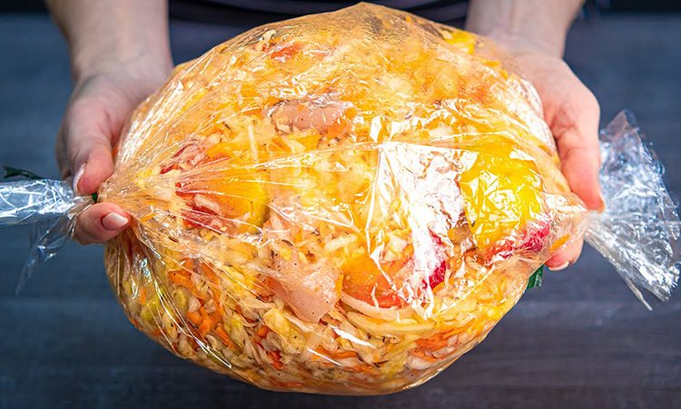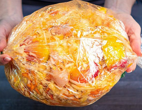 Капуста с курицей в пакете