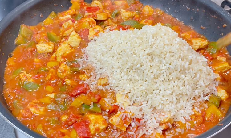 Испанскую паэлью часто называют деликатесом, но ее совершенно спокойно можно приготовить на домашней кухне. Просто потушим, почти как обычно, курицу с овощами, а потом добавим рис.