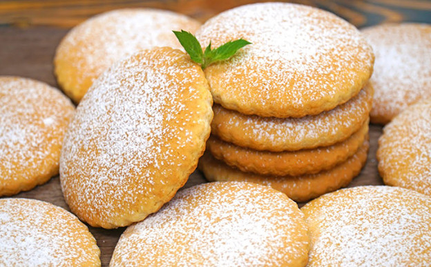 Застилаем противень пергаментом, кладем на поверхность полученные заготовки. В разогретой до 180 градусов духовке выпекаем коржики 25 минут.