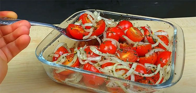 Настаиваться помидорам нужно 1 час. После этого их можно подавать.