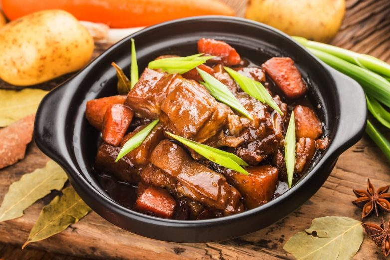 Накрывай мясо сковородкой и туши его на минимальном огне примерно 1 час. Если заметишь, что его сок начинает испаряться, тогда добавь совсем немного воды. Специи добавляй на финальном этапе жарки.