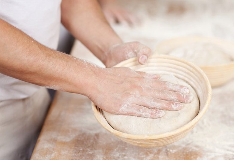 Миску обильно смажь растительным маслом, выложи в нее тесто, накрой полотенцем и оставь на 40 минут подходить. Обомни тесто, накрой и оставить еще на час.