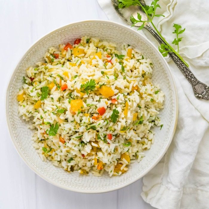 • После добавить рис и нарезанные кубиком ананасы;