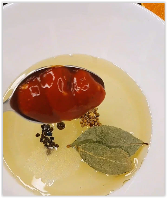 Для маринада нам понадобится уксус, масло подсолнечное, соль, сахар, томатная паста или кетчуп, лавровый лист, черный перец, семена горчицы, кориандр, душистый перец.