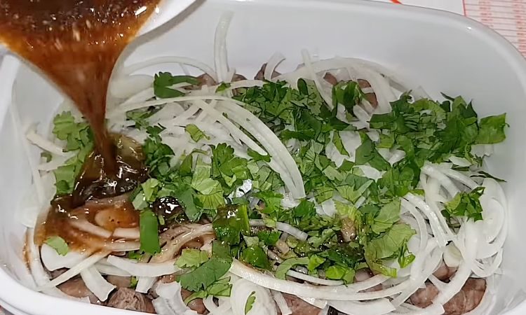 Нежные куриные сердечки с хрустящим маринованным луком готовы!