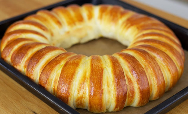 Пусть поднимется еще 30 минут при комнатной температуре. Уже перед выпечкой смажьте поверхность взбитым яичным желтком, это гарантирует формирование аппетитной корочки. Выпекать хлеб нужно при 180 градусах около 25 минут.