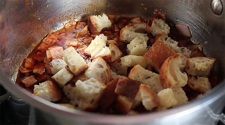 Перемешиваем, насыпаем сухари так, чтобы хлеб впитал побольше масла и вкуса.