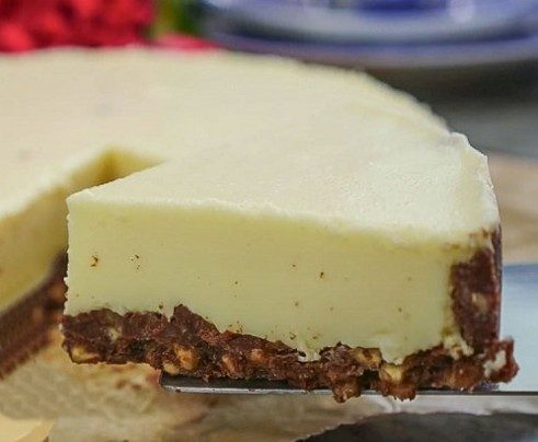 По вкусу он напоминает чизкейк, только выпекать его не нужно. В качестве основы — шоколадное песочное печенье, но в принципе подойдет любое. Орехи тоже можно брать по вкусу.