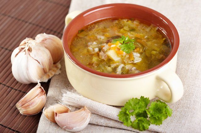 Крупа. Сейчас в классический рассольник кладут перловку, перед варкой супа ее замачивают, чтобы она не слишком долго варилась. Если хозяйка хочет более быстрый вариант супа, то берет рис.