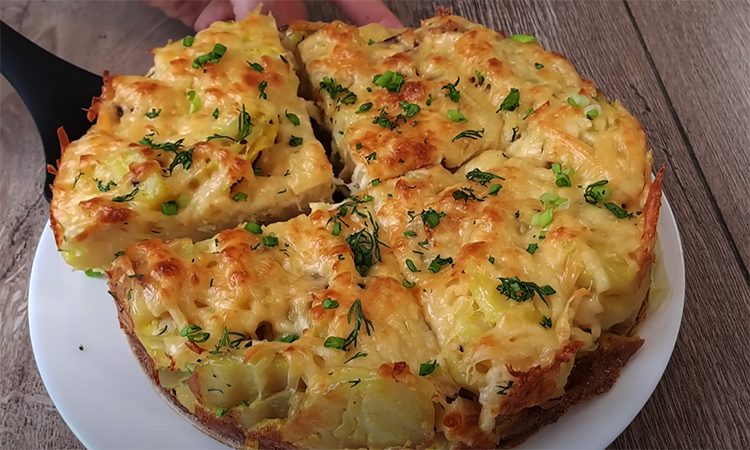 Рецепт быстрого картофельного пирога подкупает своей простотой, ведь для него не нужна мука — значит, не будет и утомительных хлопот с замесом теста. Картошка выступит основой, внутри же мы спрячем сочную начинку. Аппетитную корочку блюду обеспечит плавленный сыр.