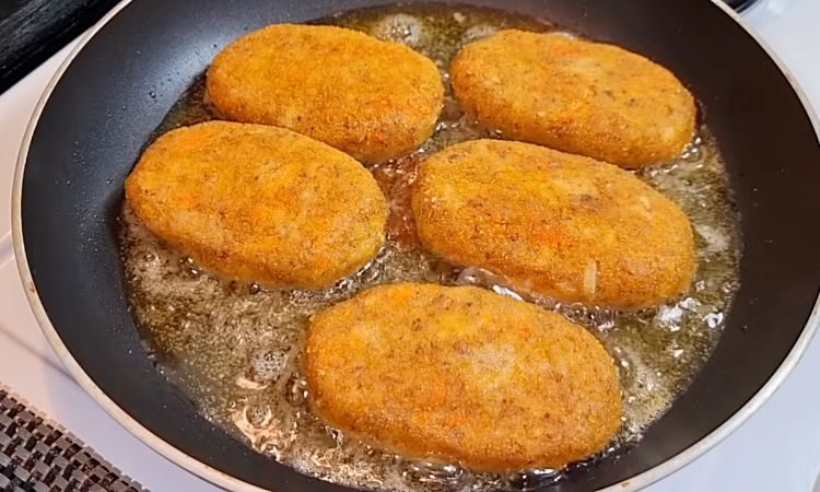 Периодически смачивая руки, формируем котлеты, обваливаем в панировочных сухарях или муке и жарим на разогретой сковороде с растительным маслом по 3-4 минуты с каждой стороны.