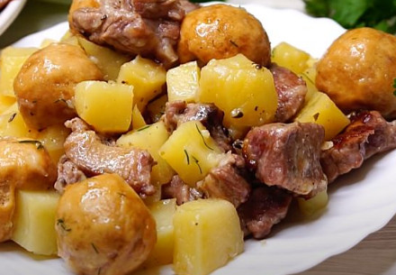 Вода — 500 мл (150 мл – на этапе готовки мяса, 350 мл – при добавлении в картошки)
