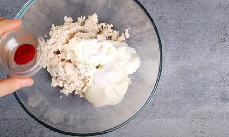 Теперь в блендере смешиваем отварное куриное филе, еще 100 граммов плавленого сыра, соль, паприку, сметану — начинка готова. Достаем основу из духовки. Распределяем по всей поверхности начинку. Сворачиваем рулетом и оставляем в холодильнике на час, чтобы закуска приняла форму.