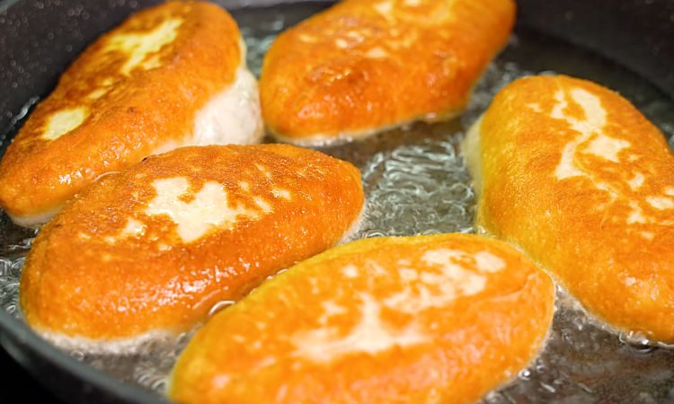 Обжариваем пирожки во фритюре до румяной корочки или в сковороде с большим количеством растительного масла на среднем огне с обеих сторон.