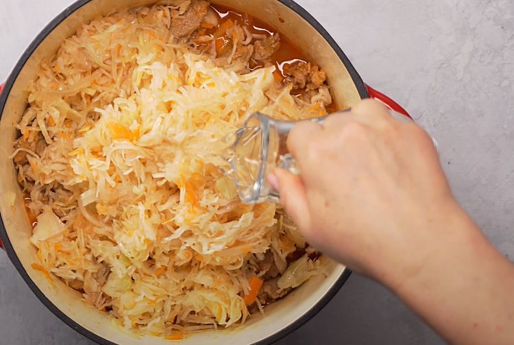 Прелесть этого блюда заключается в том, что для его приготовления вам понадобятся всего 4 ингредиента — свинина, квашеная капуста, морковь и репчатый лук. Благодаря томлению в духовке и кислоте квашеной капусты, кусочки мяса становятся нежными, а у капусты появляется особенный аромат.