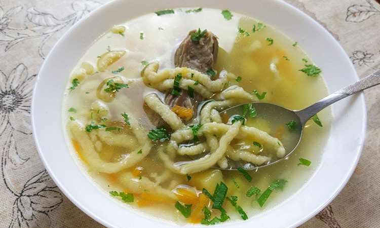 Суп с настоящей домашней лапшой готовят редко, поскольку именно на хлопоты с тестом для лапши уходит слишком много времени. Утомительный этап нарезки лапши можно и пропустить, воспользовавшись проверенным способом, который часто используют в небольших деревнях. Здесь придумали делать тончайшую лапшу из жидкого теста, пропуская его прямо в кипящий бульон.