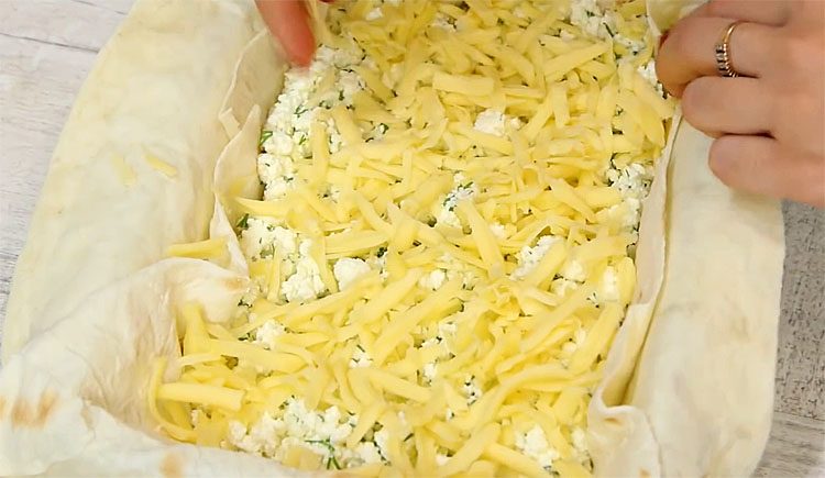 Тонкий лаваш при знании рецепта легко превратить в настоящий сырный пирог. Все, что нам потребуется в дополнении к лавашу: сыр, творог, яйцо и 20 минут времени.
