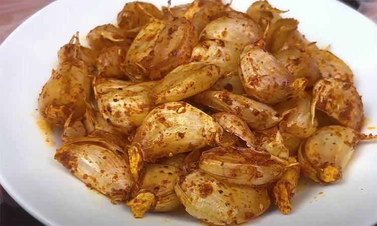 Чеснок часто используется в приготовлении еды как дополнительный ингредиент, который придает блюду особый аромат. Но мы рекомендуем приготовить его отдельно в качестве самостоятельной закуски. Просто обжариваем его в масле, словно картошку фри.
