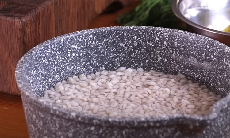 К супу также добавляем мясо с голяшки, отваренную перловку и огуречный рассол. Перемешиваем, солим, варим еще 5 минут. В самом конце добавляем измельченный чеснок и зелень и снимаем с огня.